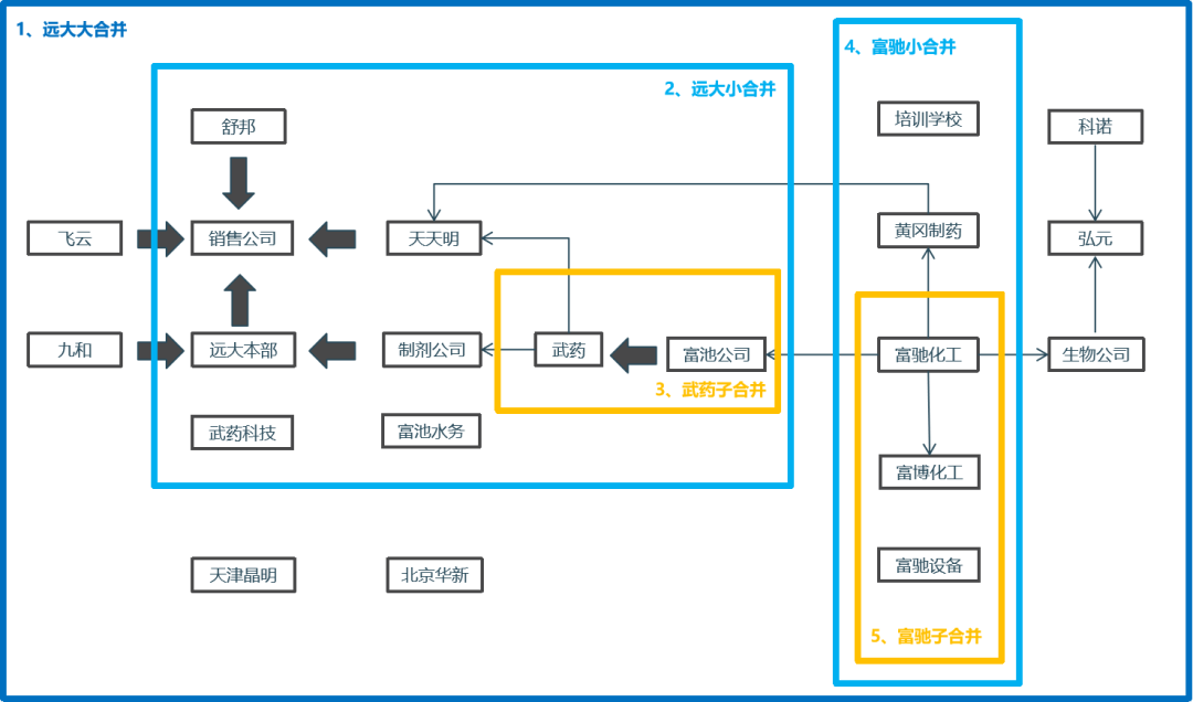 (2)合并报表主要包含远大医药(中国)有限公司大合并、远大医药(中国)有限公司小合并、武药公司子合并、富驰化工公司小合并、富驰化工公司子合并五块合并内容。