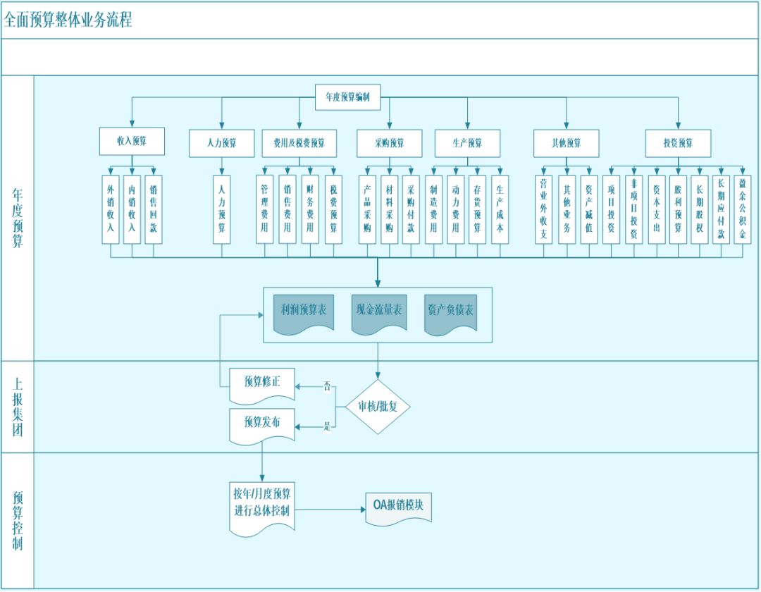 (1)全面预算涵盖业务经营预算、财务预算、投资预算三方面的预算内容;