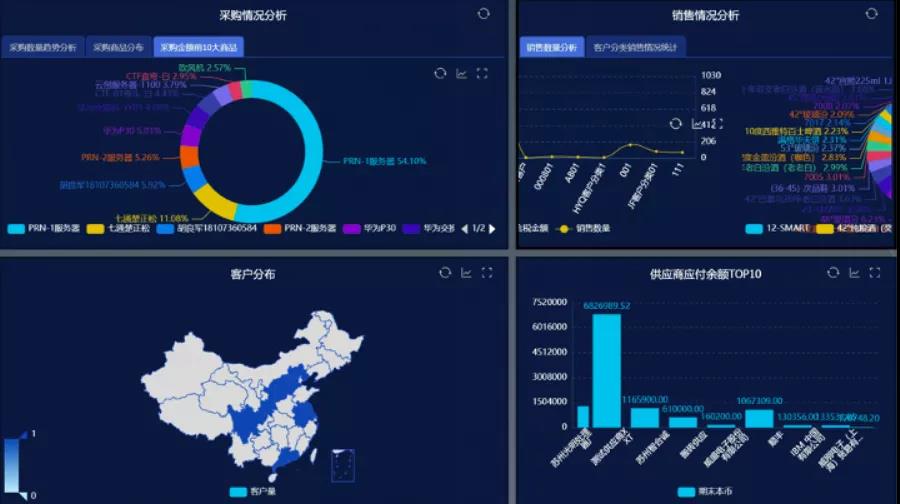 特别值得一提的是,YonSuite并不是一款冰冷的产品,它通过视觉和触觉的感知,让企业的业务价值看得见、可触摸。YonSuite支持全球化的多币种、多汇率、多语言、多账簿管理,通过云端访问,全球分公司可根据需要直接下载公共数据。智能任务、智能识别、智能助手等智能化的嵌入,让工作省心省力。透过可视化的界面,企业能够随时随地、实时查看采购情况分析、销售情况分析、客户全国分布等数据,经营情况一目了然。
