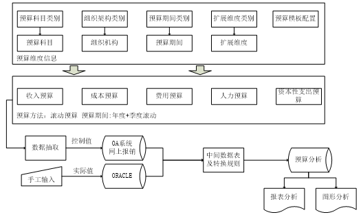针对系统多、口径杂、数据不联动,无法进行实时反馈、跟踪和调整等情况,整合各个系统接口,借助EP ETL工具抽取不同系统中的实际值到预算系统中来查询分析报表,从而实现实际值与预算值对比分析的实时展现;