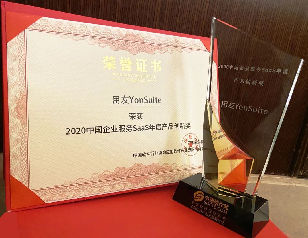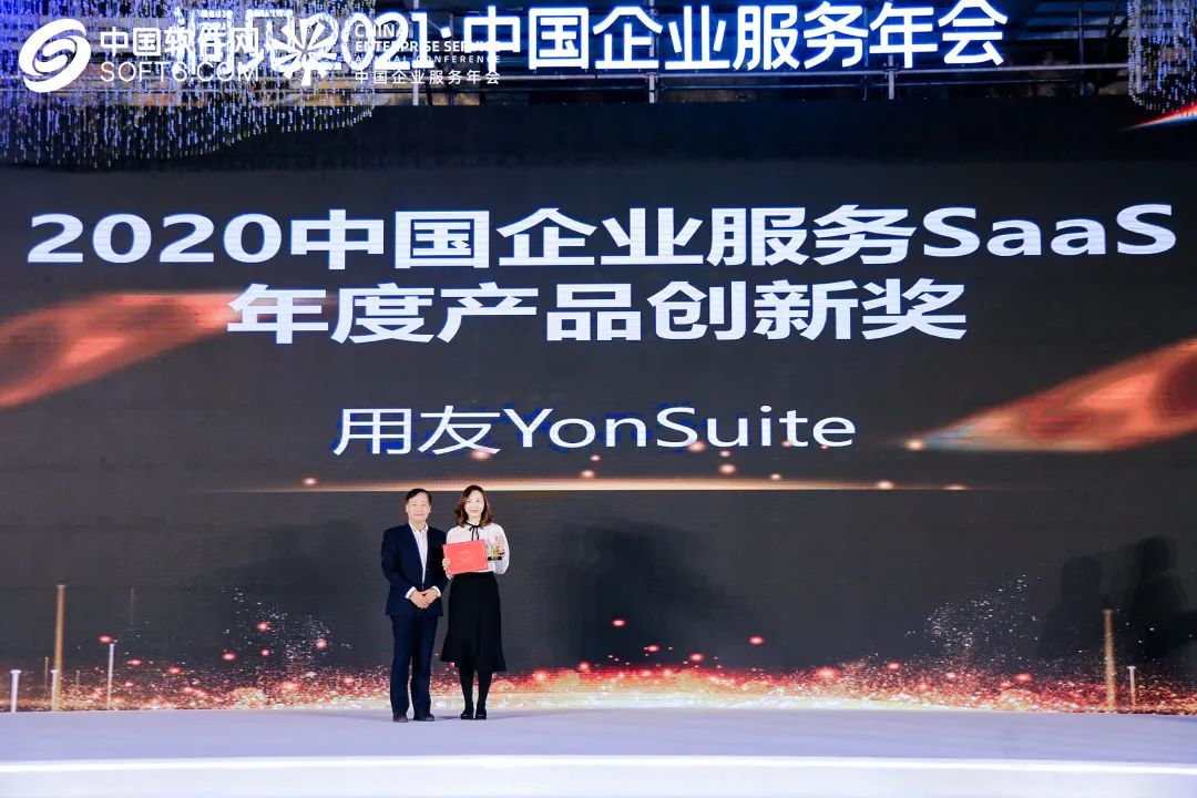 本次盛会揭晓了2020中国优秀企业及产品榜单。用友YonSuite荣膺“2020中国企业服务SaaS年度产品创新奖”。
