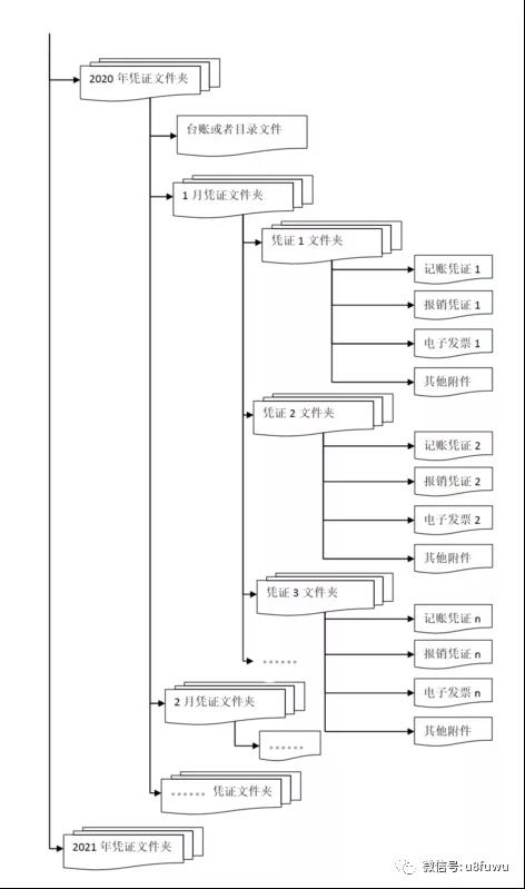 无电子档案管理系统的单位,如实施了会计信息系统,与电子发票相关的记账凭证、报销凭证等已全部实现电子化,可将电子发票与相关的记账凭证、报销凭证等移交会计档案管理人员保存,编制档号,存储结构建议采取下图1所示方式: