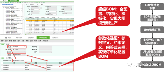 根据LDP营销系统生成的U9 cloud销售订单和PLM传递到U9 cloud系统的超级BOM,按客户定制需求进行选配,快速、简单、高效,效率提高30%以上!