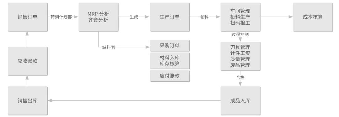 • 计划部根据销售订单,做齐套分析,形成生产订单,若材料缺料,则形成采购订单。