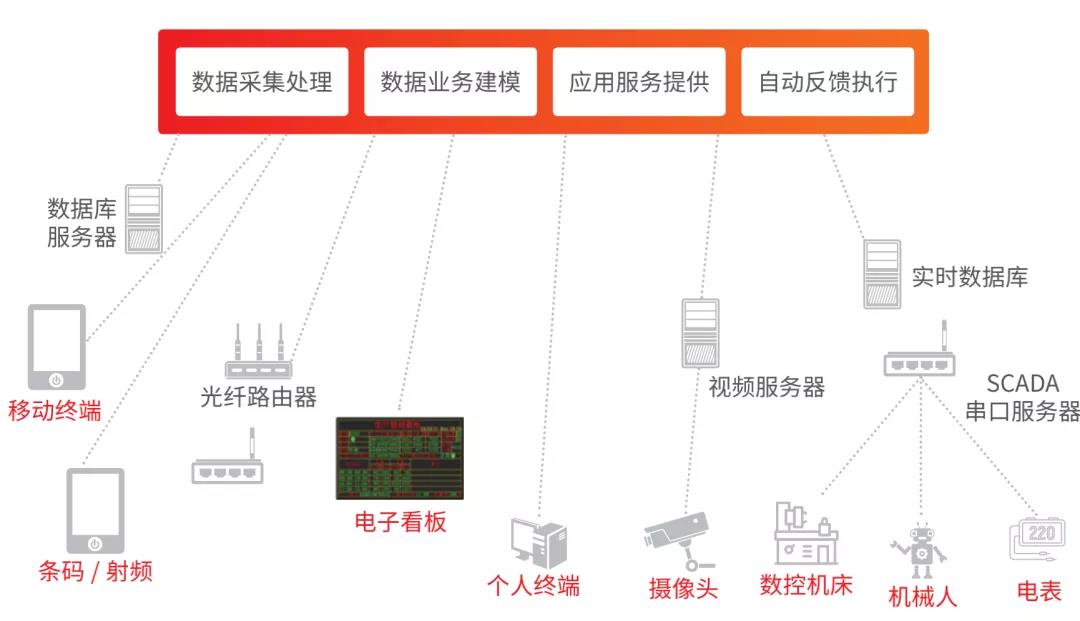 • 无线采集数据:手持数据采集器 (PDA),在车间复杂的工作环境中, 实时扫码采集数据,同步上传到 ERP,不受环境的影响。
