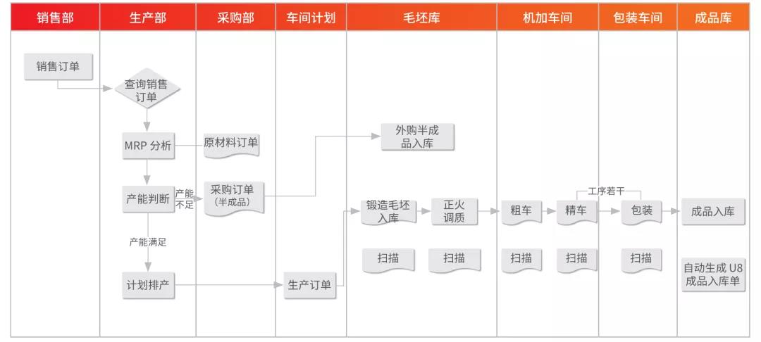 • 优化车间处理流程:取消粗加工、精加工、热前处理、热后处理这四个车间的出入库环节,将其合并成一个大车间,通过工序实现相互关联,不仅减轻了工作量,而且还可以避免信息传递过程中的人为差错。