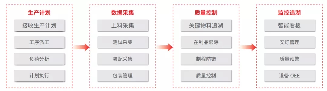 • MES生产管理细化了生产过程中的各个步骤,对生产五大元素(人机料法环)进行了更一步的记录;
