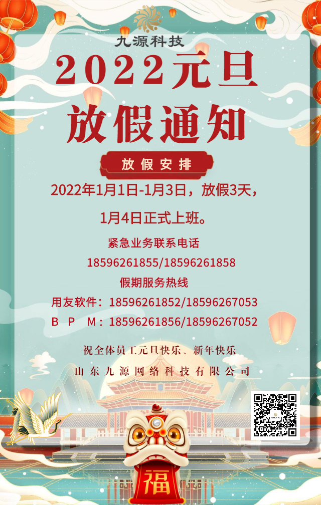 山东九源网络科技有限公司2022年元旦放假通知
