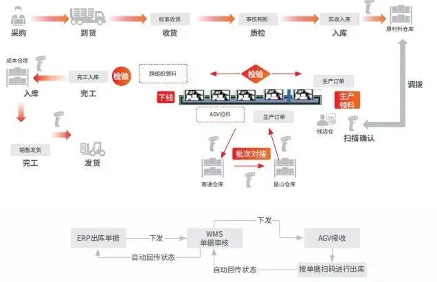 结合 WMS 与 AGV,实现了物料拉动及扫码出入库功能。