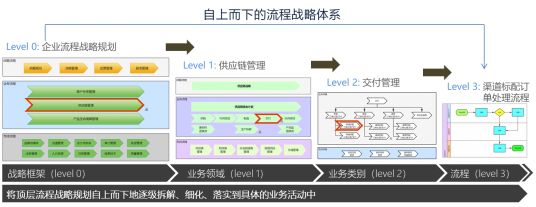 FlowPortal BPM系统的核心是流程,实现以战略为导向,以组织结构为框架,以管理控制系统为核心,以流程和制度为基础的动态管理系统,帮助企业将流程战略自上而下逐级拆解、细化,构建自上而下流程战略体系。