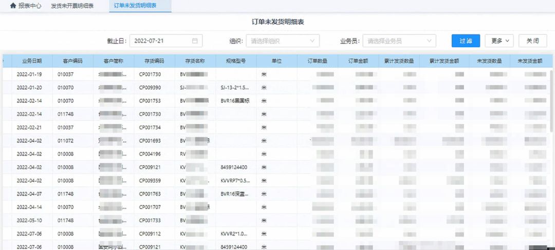 例如,通过“订单未发货”报表,销售人员可以及时查看到哪个客户的订单未及时发货,敦促产品发货,缩短发货周期,提高客户满意度;通过“发货未开票”报表,销售人员可以快速锁定哪些客户尚未开票,通过售后服务等探寻未开票的原因,解决客户问题,服务客户、把控市场,不断推进科讯品牌的建立。
