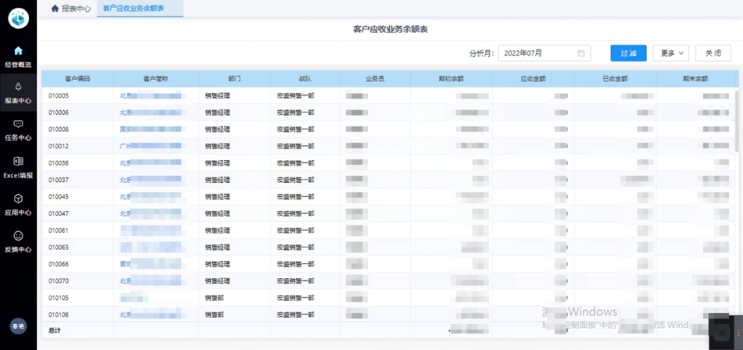 图:客户应收业务余额表