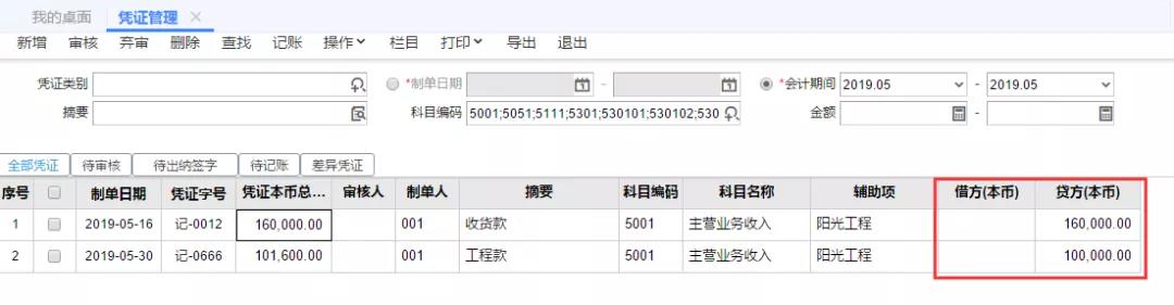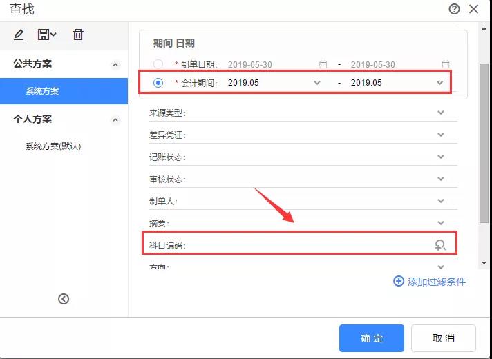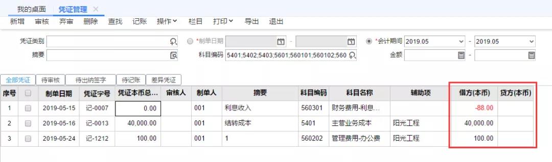 第3步:确认费用类科目后,可以在【凭证管理】界面,修改【科目编码】为收入类科目进行查询。