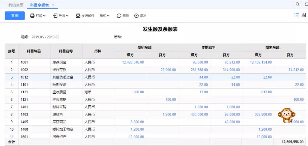 第1步:进入【总账】模块,查询科目余额表,并且与利润表数据逐一核对,查询错误取值科目。