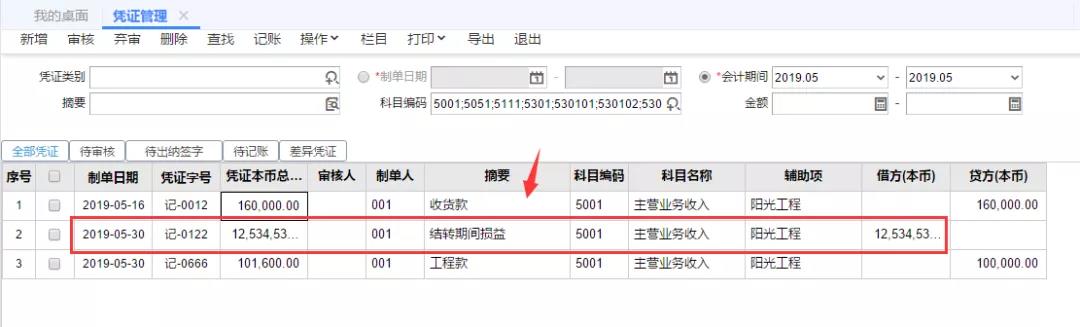 第1步:查看凭证是否有进行期间损益结转,且期间损益结转后的凭证是否已记账。