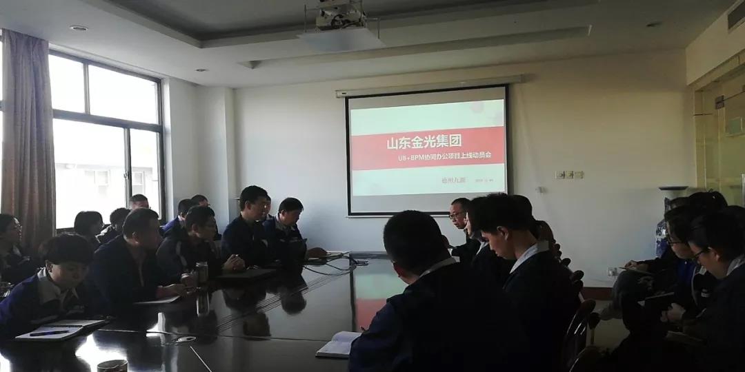 山东金光集团有限公司与山东九源网络科技有限公司达成合作协议。U8+BPM协同办公项目正式启动,双方团队通力配合,经过百日奋战,项目已正式启动上线。系统上线运行后,九源科技的技术团队持续跟进服务,保证了系统的顺利运行。