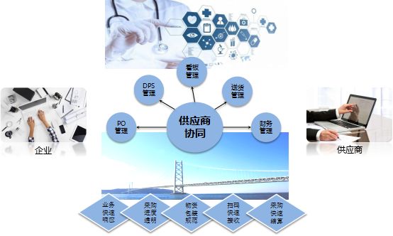 · 实现企业与供应商之间采购计划、采购申请、采购订单、发货通知、发货跟踪、采购对帐、代管确认、采购开票等一系列作业处理。