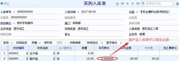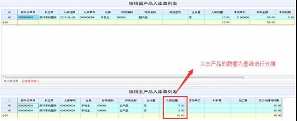 核销调整以委外订单为基础,主副产品的入库单进行核销,将副产品的金额(副产品入库单需手工指定金额)分摊到主产品入库单上,副产品入库单只能一次分摊,对主产品入库单可以进行多次分摊。