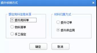 手工核销:手工选择本次要核销的入库单和材料出库单进行核销在手工核销-选项中时,可以根据实际业务情况来选择额定用料信息来源及材料归集方式