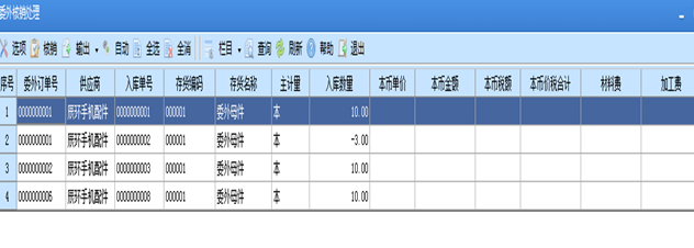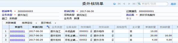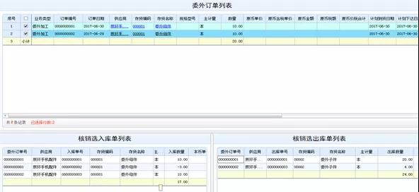 按入库单批量核销:一次可选择多张委外入库单,同时进行核销,以提高核销效率