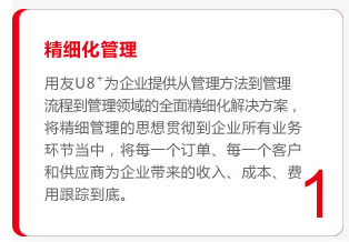用友U8+成长型企业管理与电子商务平台;用友U8+以“精细管理 敏捷经营”为设计理念,涵盖财务会计、供应链管理、生产制造、管理会计、人力资源、协同办公、客户关系管理、产品全生命周期管理、分销管理、零售管理、电子商务、商业智能、移动商务等十余个应用领域 。